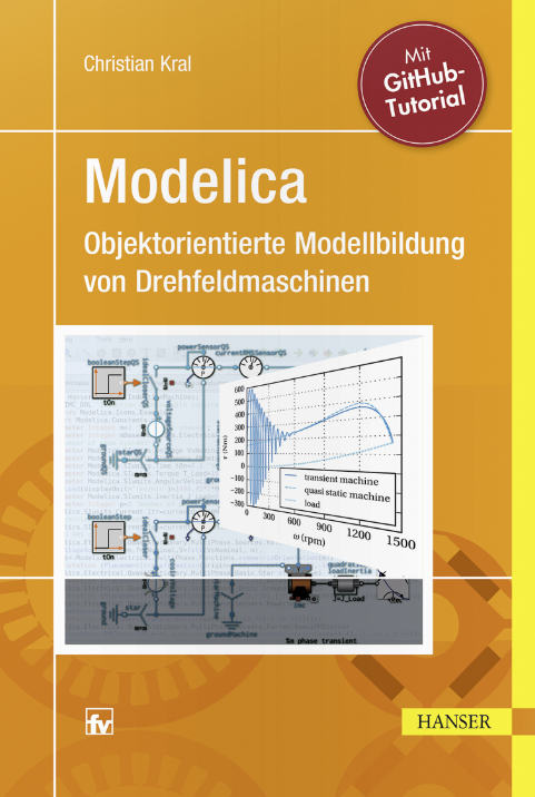 The book (written in German) gives an introduction to Modelica in the field of electrical engineering with a particular focus on polyphase electric machines. Simulation examples of the open source library HanserModelica include transient and quasi stationary electric circuits including electrical systems coupled to the magnetic, thermal and mechanical domain. The theory and the implementation of the polyphase electrical machines enclosed in the Modelica Standard Library are explained in detail. Each application examples of the HanserModelica library can be simulated in OpenModelica (HanserModelica is included in OpenModelica 1.13.0 as system library). The book also includes a brief tutorial on GitHub to explain how a Modelica project can be initiated, developed and maintained.